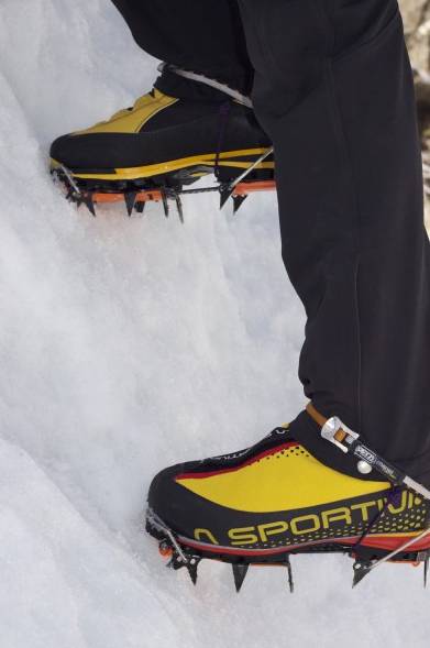 高山靴属于技术攀登活动使用的鞋类,它们是攀登高海拔山峰的必备用品之一。这种鞋是所有户外徒步鞋中最大、最重、最结实的产品,它们由内靴和一体式的雪套构成并且能够兼容各类冰爪。这种鞋一般情况并不常用,它们仅适合最艰苦的地形和环境使用。